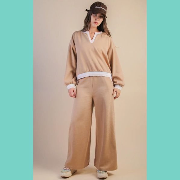 Mocha, Pink & Cream Detail Pants Set